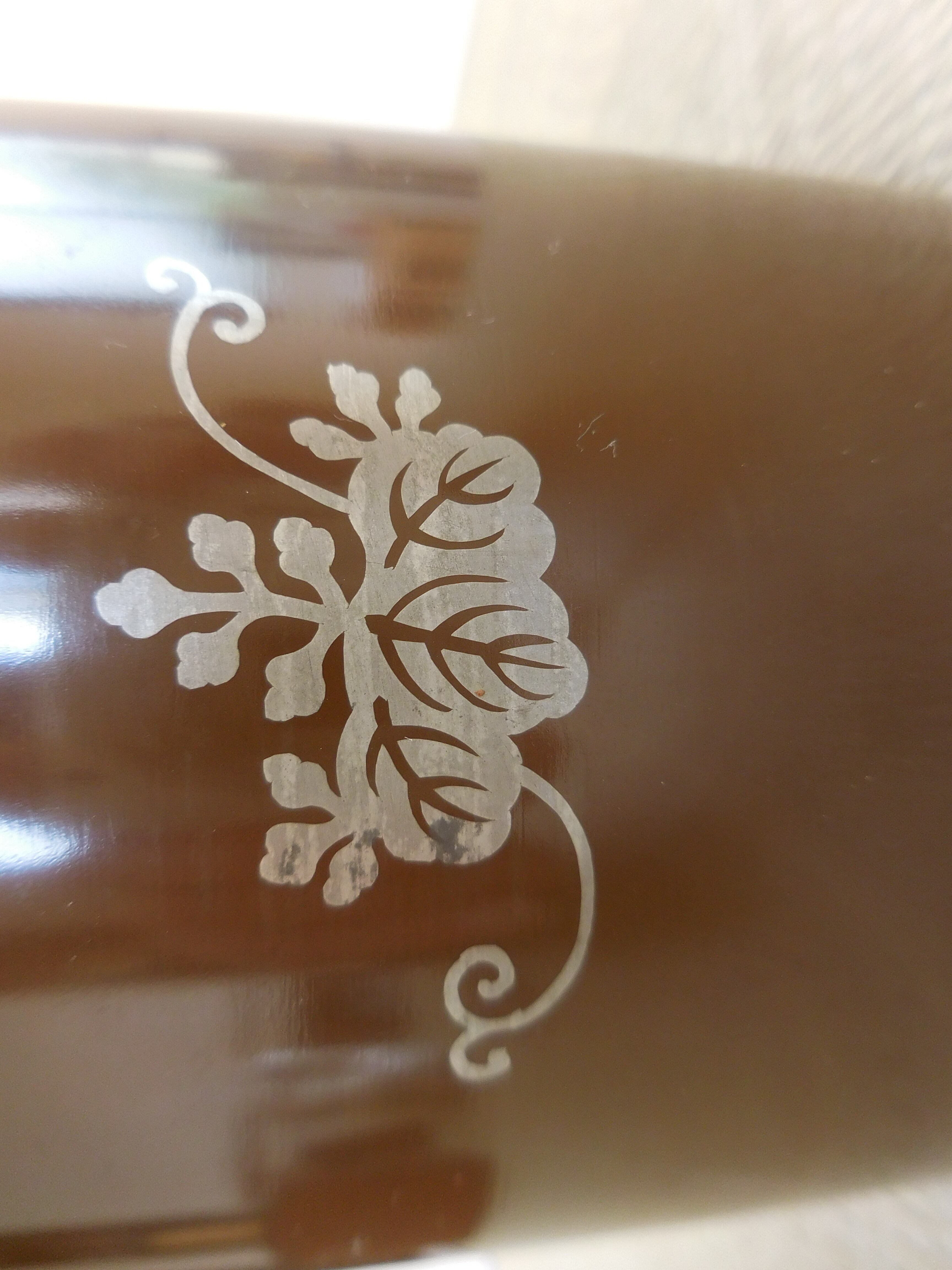 煙草盆のセットです。火入は象嵌の入ったもので、未使用品。灰と炭が付いています。