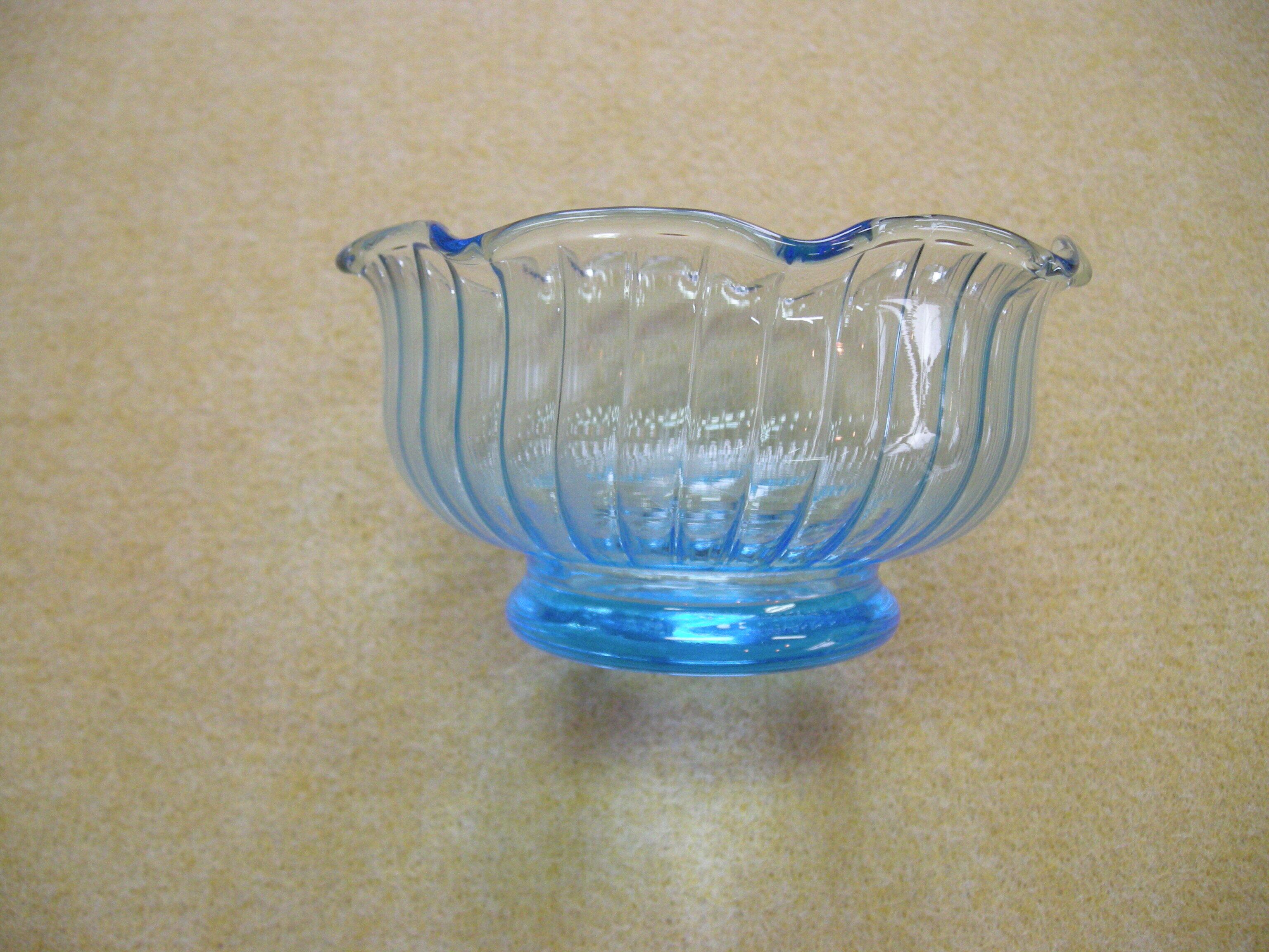 1-17 レトロガラス小鉢 みず色 波型縁