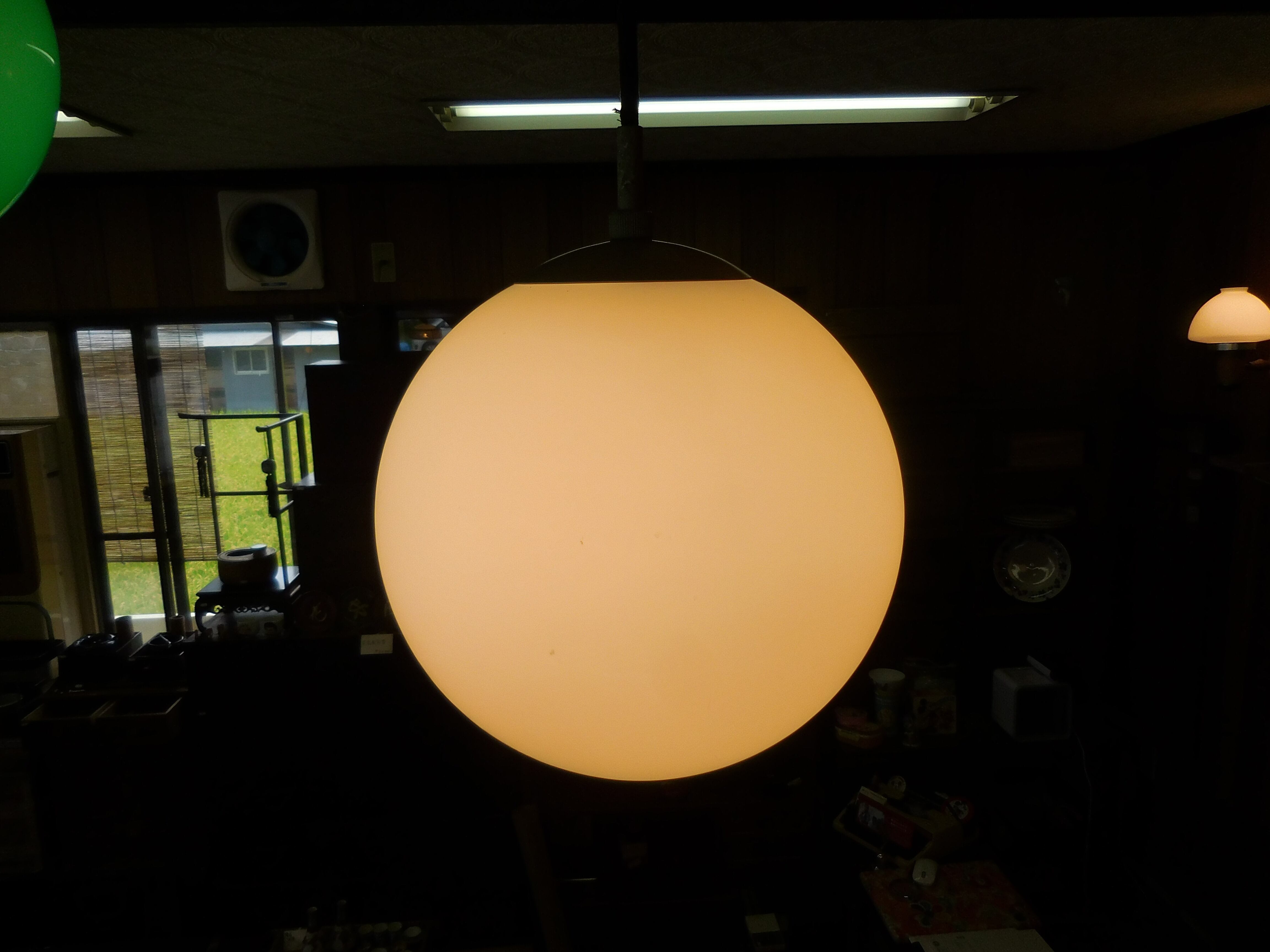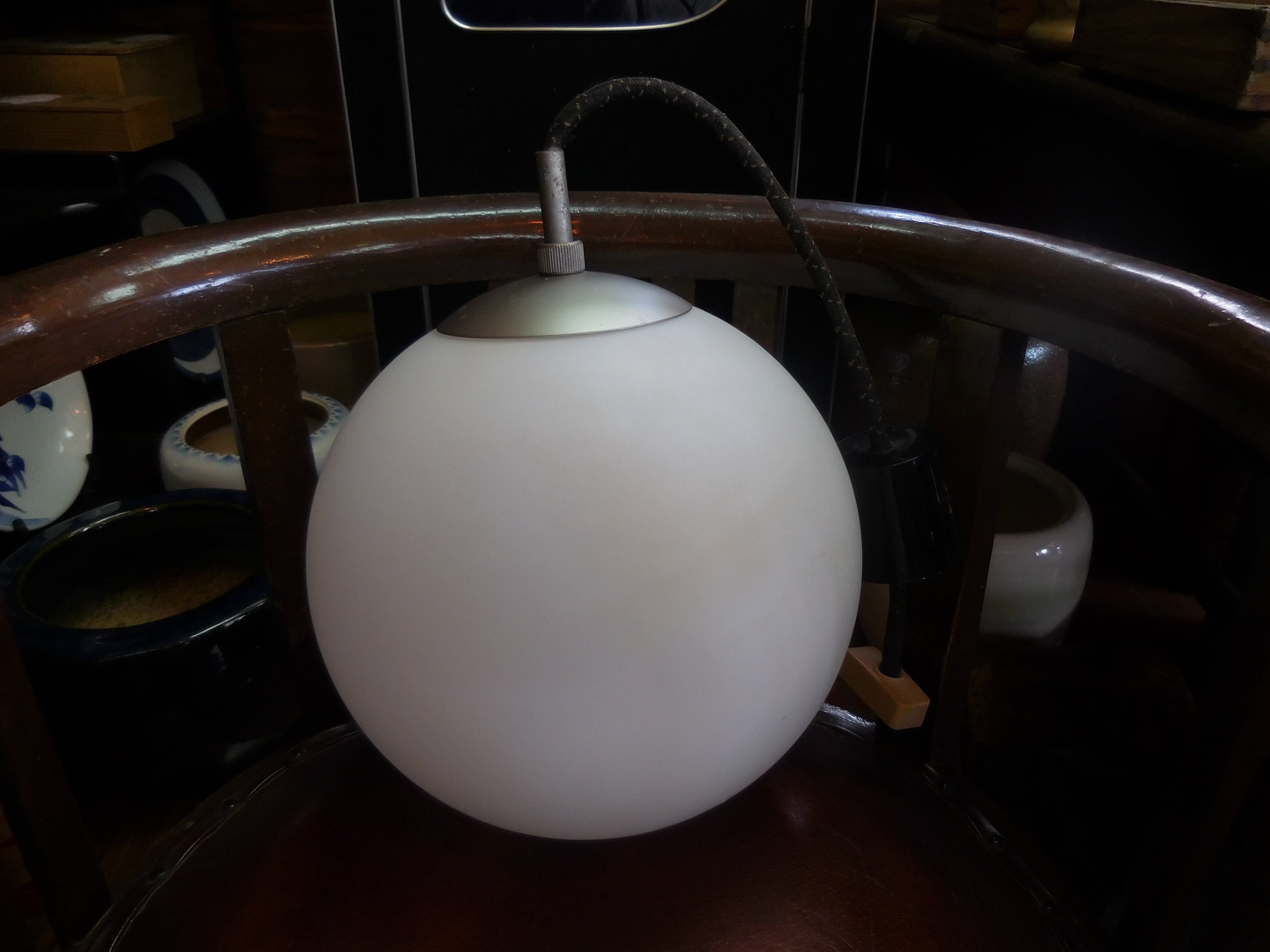 ガラス製の球形で白いすりガラスです。電源コードは当時物です。